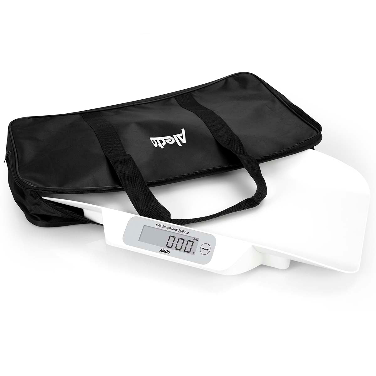 - De babyweegschaal weegt tot maximaal 20 kilogram en is tot op 5 gram nauwkeurig.