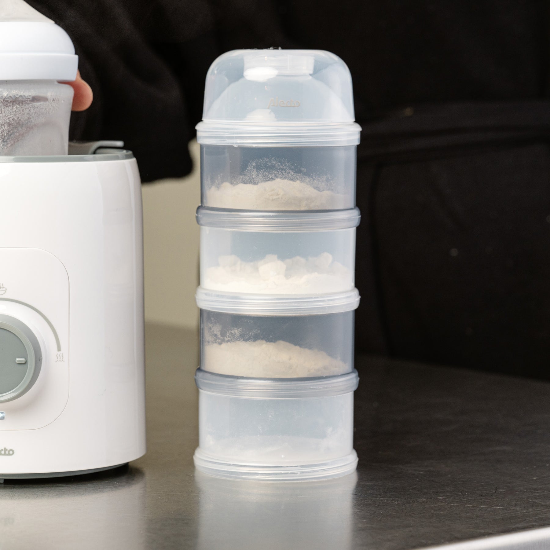 Met de tuit kun je makkelijk het melkpoeder doseren in de bakjes schudden. De randen van de bakjes zijn afgerond zodat er geen poeder in de hoekjes achterblijft. De BF-4 is vaatwasser, diepvries en magnetron bestendig. De melkpoedertoren is BPA vrij en veilig om te gebruiken.