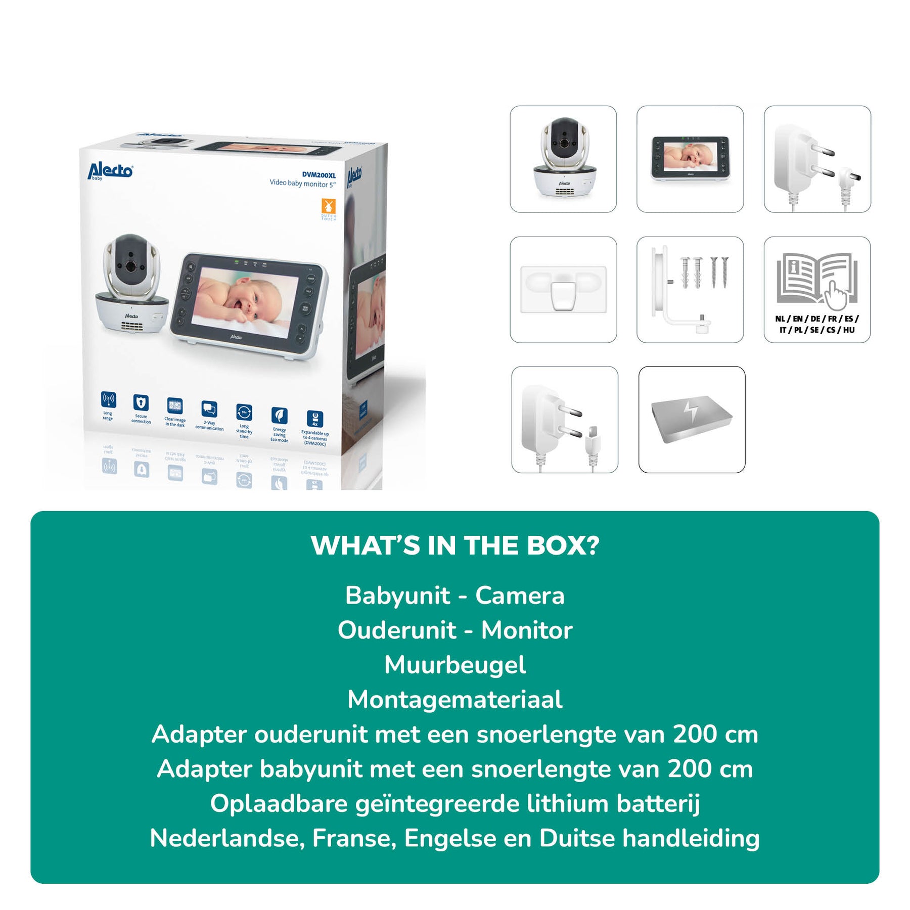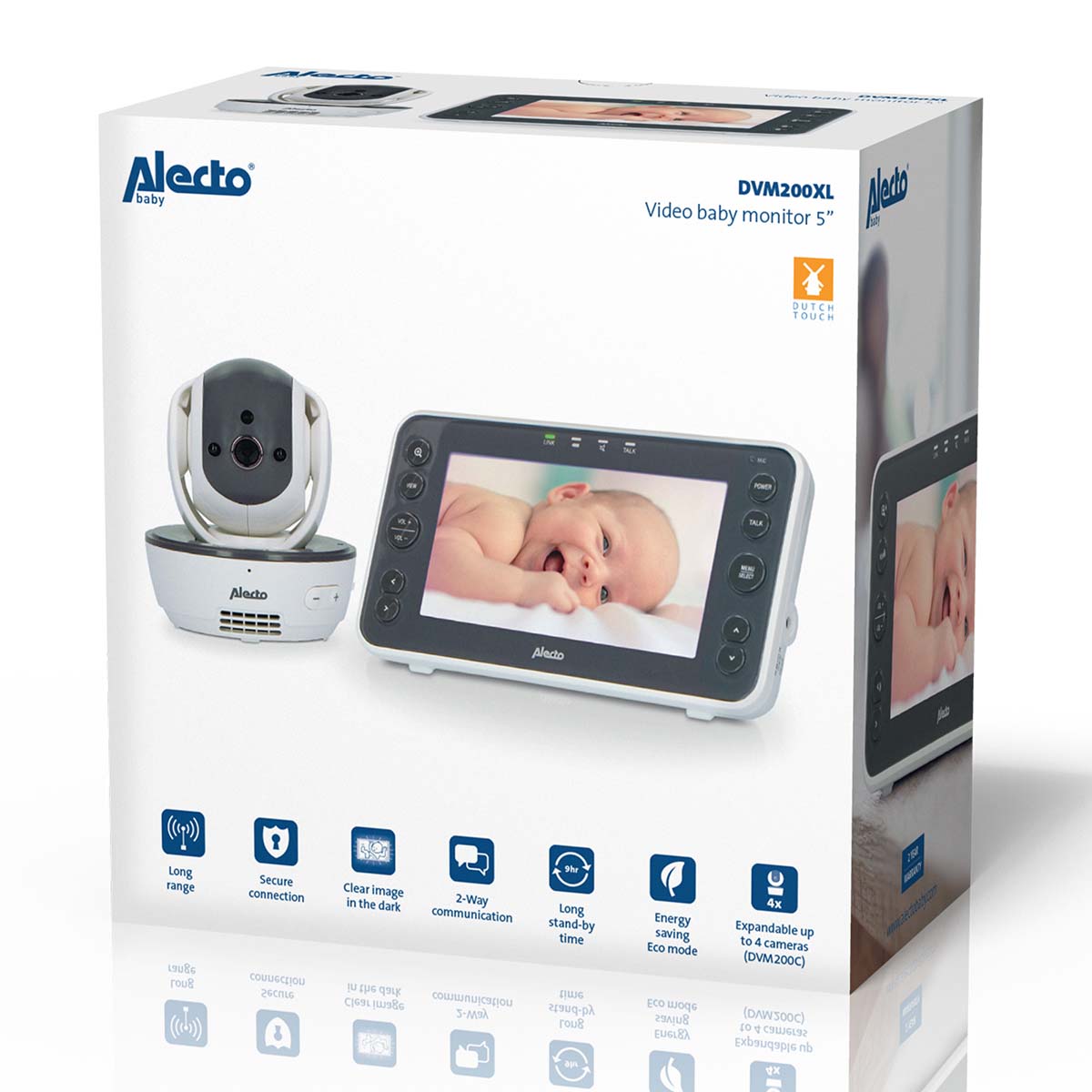 - Extra groot scherm. De monitor van de DVM200XL maak deze babyfoon echt XL. Met een diameter van 5 inch / 12,7 centimeter is dit de monitor met het grootste display dat op dit moment in de markt verkrijgbaar is.