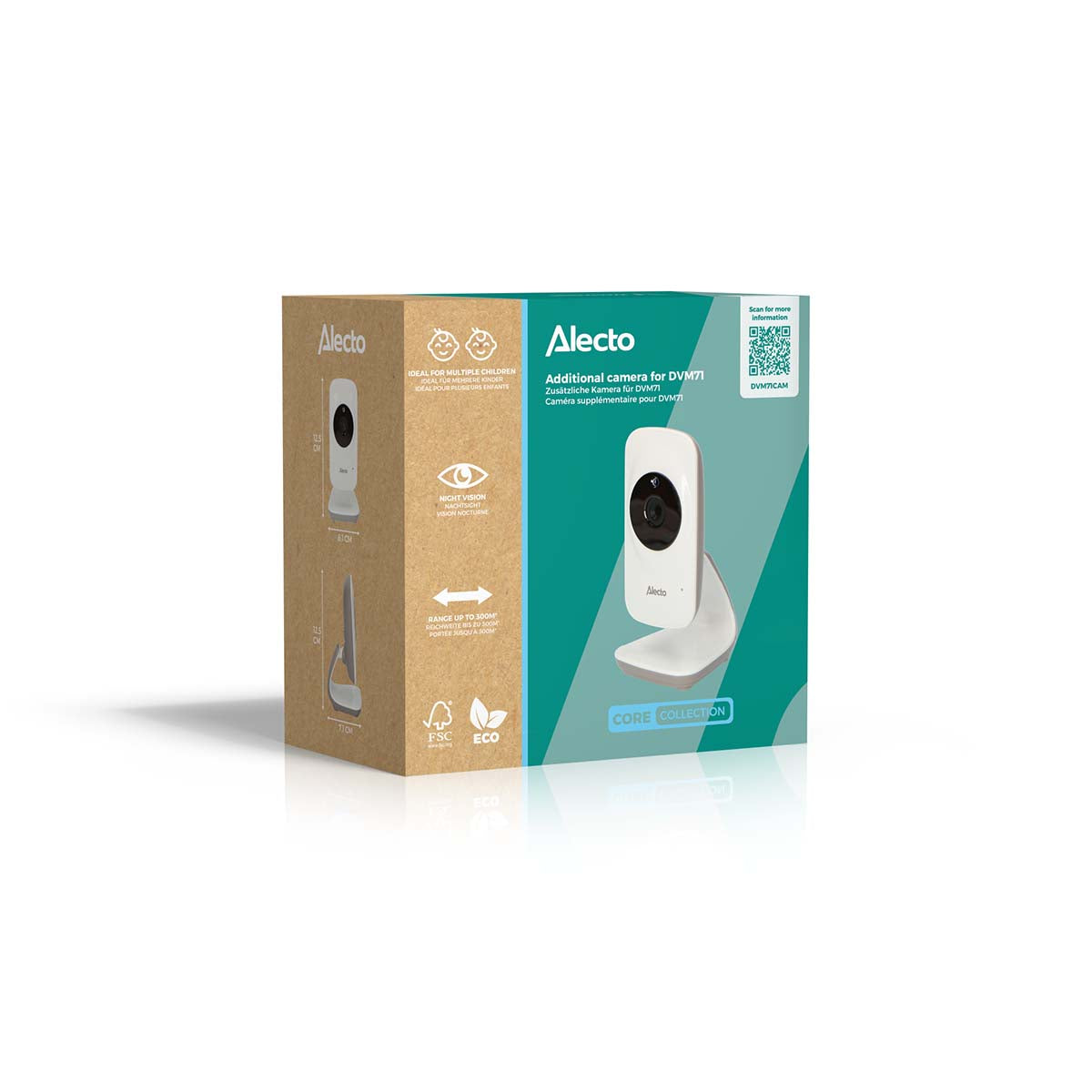 De Alecto DVM71CAM is een extra camera ter uitbreiding van de Alecto DVM71 en DVM71BLACK babyfoon met camera. Standaard worden deze babyfoons geleverd met één ouderunit en één babyunit (de camera). Maar wanneer je meerdere kindjes hebt, verschillende slaapplekken in huis wilt monitoren of extra flexibiliteit zoekt, is een extra camera een ideale oplossing. Met de DVM71CAM breid je jouw babyfoon eenvoudig uit en kun je tot wel vier camera’s koppelen aan één ouderunit.