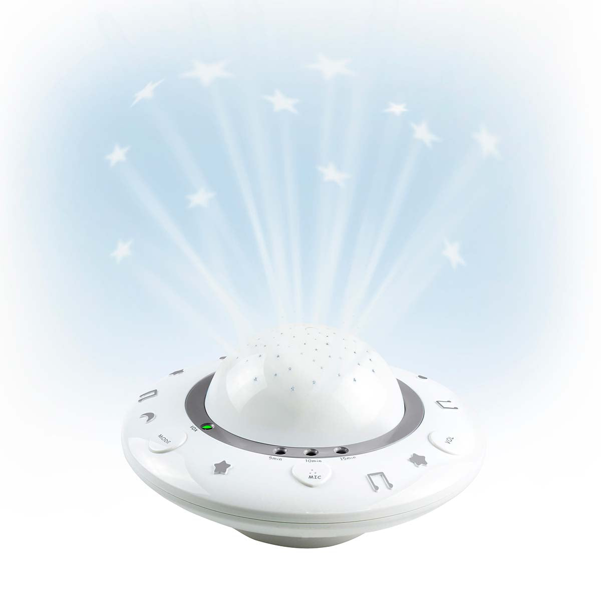 De BC-125GS is een baby projector waarmee je mooie en kleurrijke beelden op het plafond van je babykamer projecteert, terwijl er rustige slaapliedjes door het kamertje klinken. Zo wordt heerlijk in slaap vallen een vaste gewoonte. De voordelen van de BC-125GS baby projector: