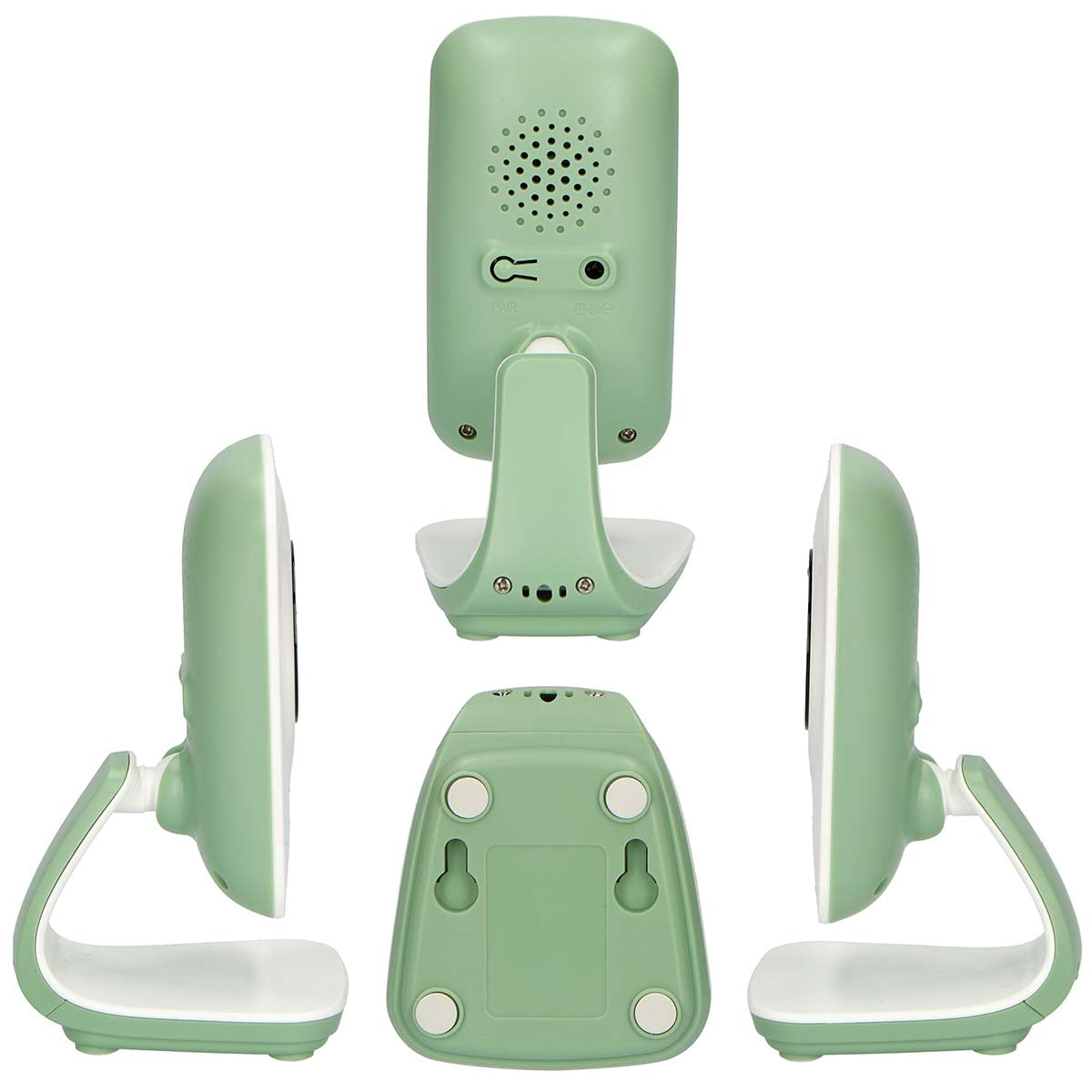 • Parent unit with screen works with adapter (included) and battery (included)