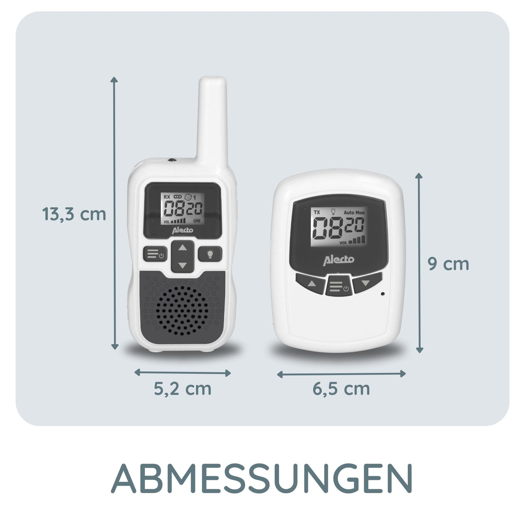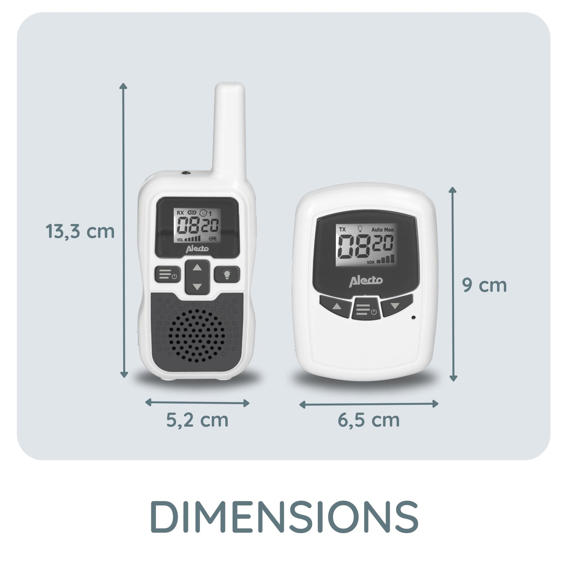 The baby monitor is equipped with a VOX function, this means the baby monitor will turn itself on once your baby makes noise. The attached belt-clip makes it easy to take the parent unit with you at all times, for example if you are tending to your garden. This can also be a large garden, since the range is up to a very large 10,000 feet or 3,000 metres. This is a lot more than the few hundred metres most baby monitors offer.