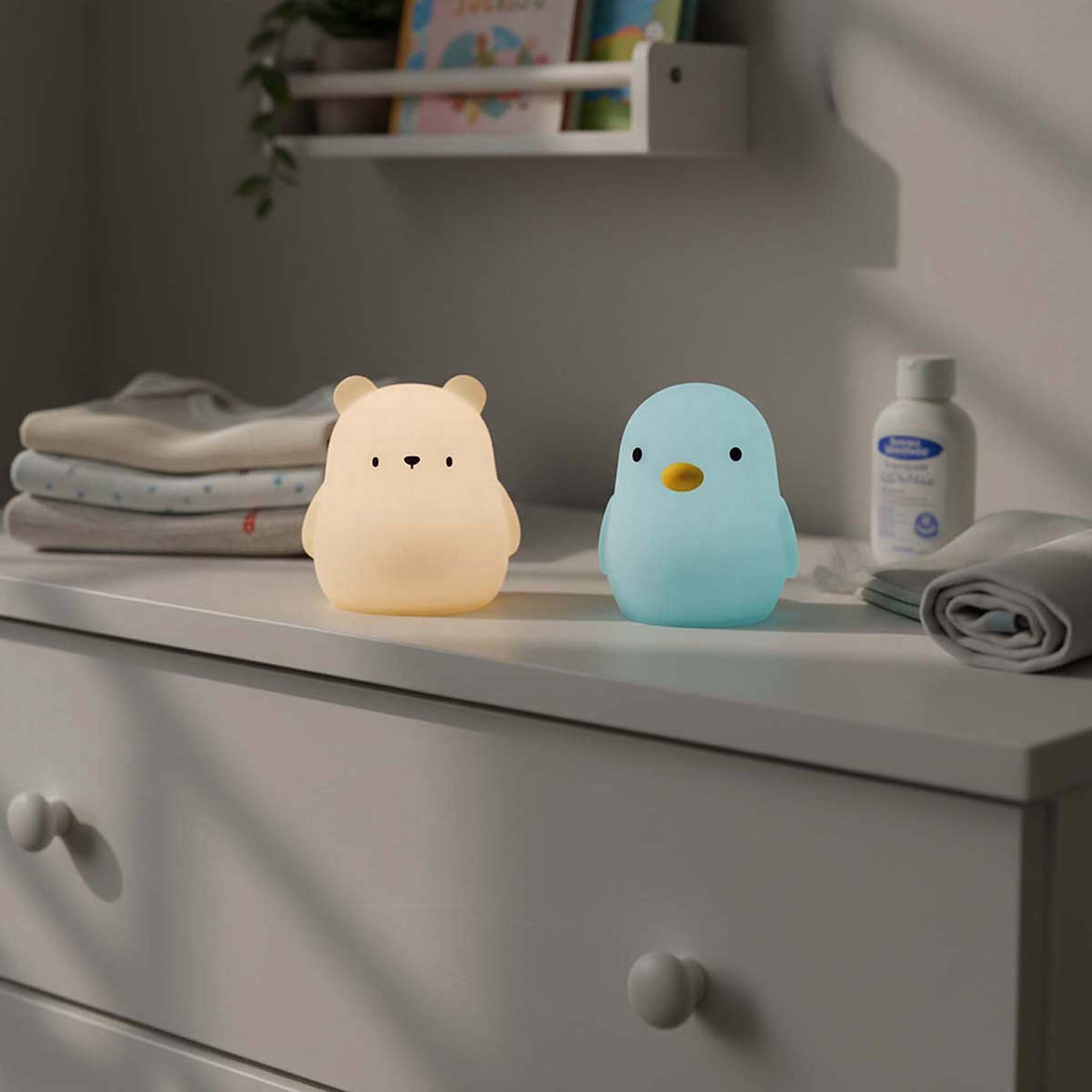 Thanks to the touch control, you can effortlessly switch between warm white light and cheerful RGB colours. This makes it easy to adjust the light to the moment or your child’s preference. The night light is rechargeable via USB-C and has a stand-by time of up to 18 hours, ideal for use throughout the night.