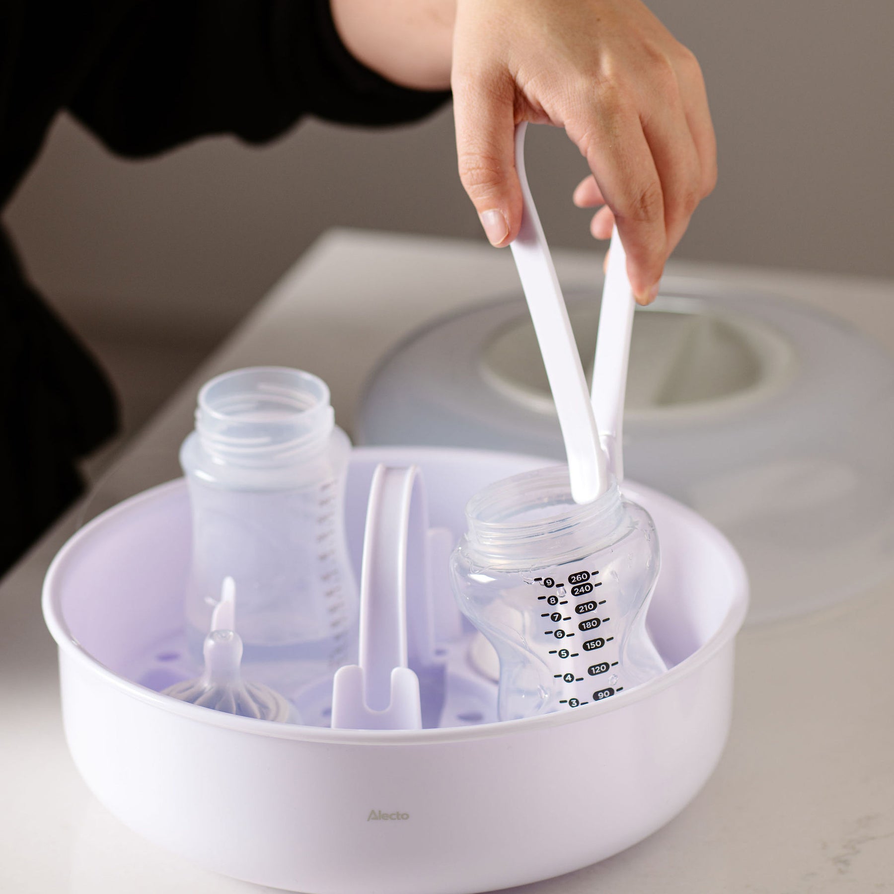 - Sterilize bottles quickly and easily, without detergents