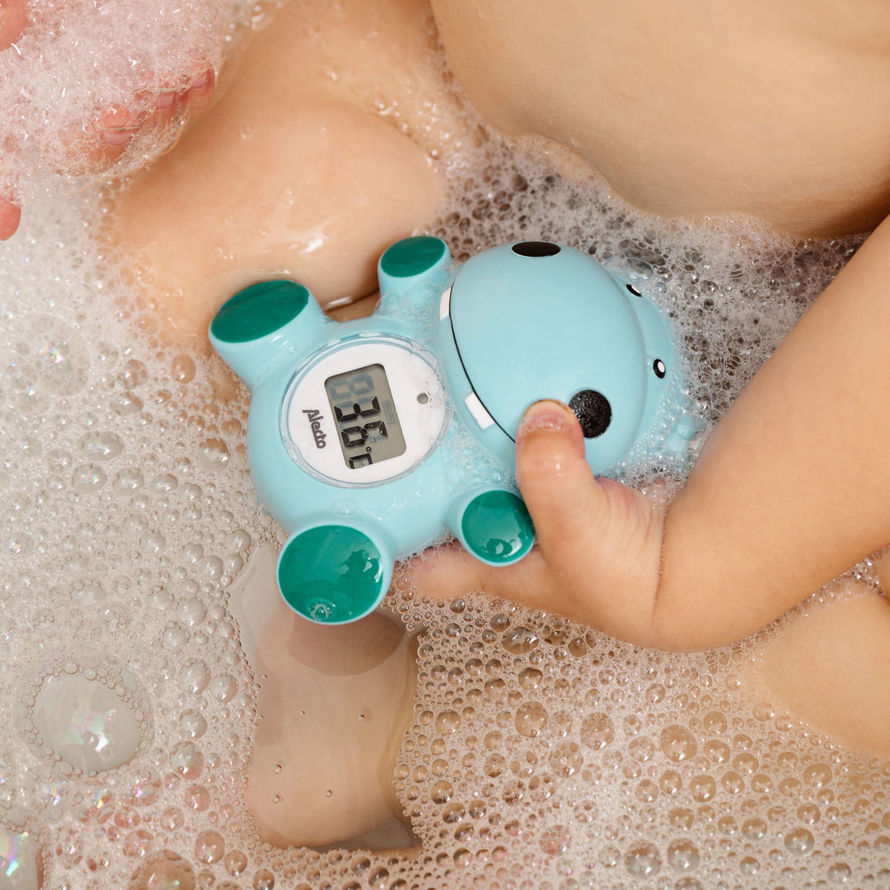 The BC-11 is more than just a bath thermometer. You can also place it in the child's room. Unlike most bath thermometers, this funny hippopotamus also measures the air temperature. It has a range of 0 to 50 degrees and is therefore intended for indoor use.