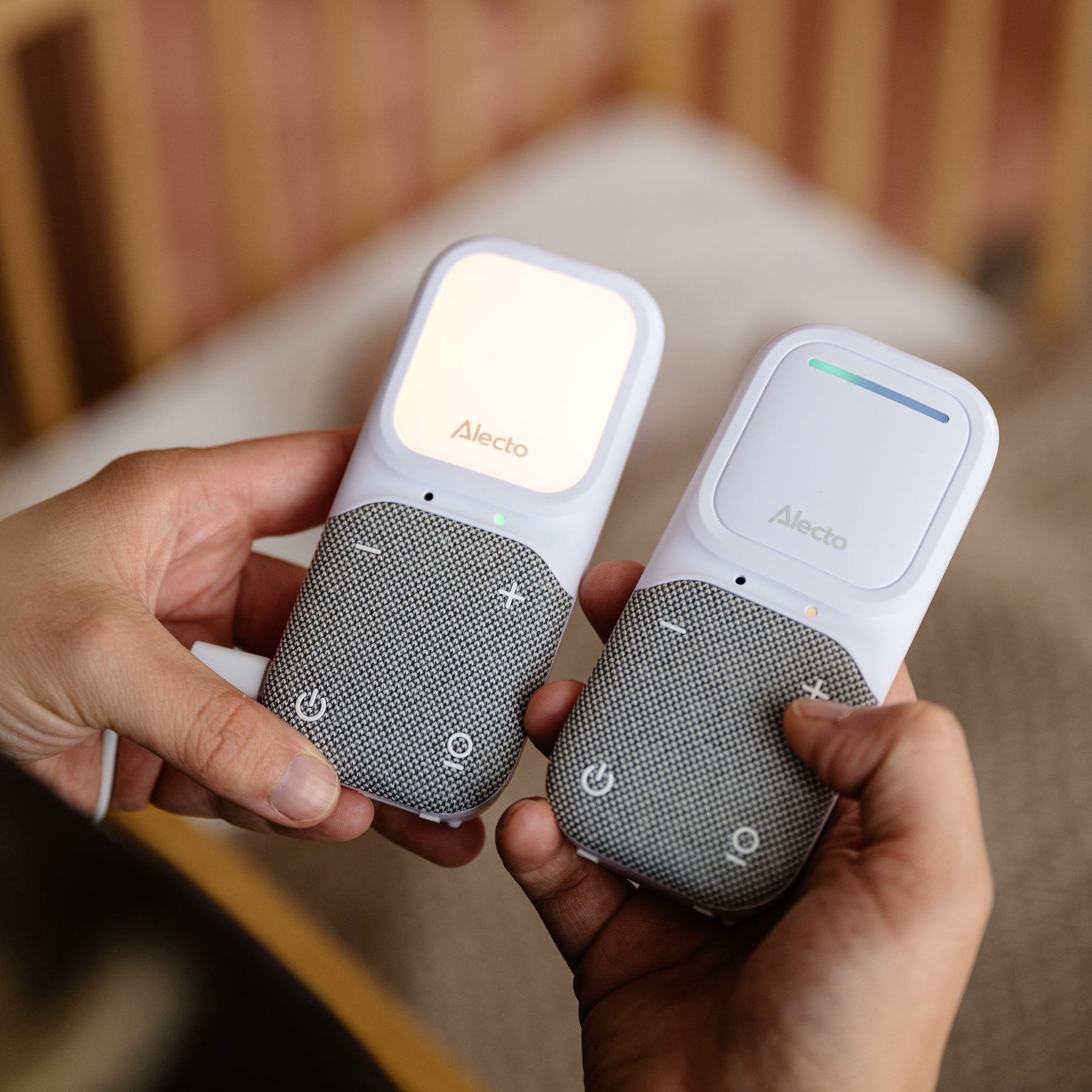 Le design moderne avec tissu distingue le DBX135 des autres babyphones sans caméra et lui confère une apparence unique et élégante. Ce design distinctif, rarement proposé par d’autres fabricants de babyphones, en fait un ajout esthétique à tout intérieur.
