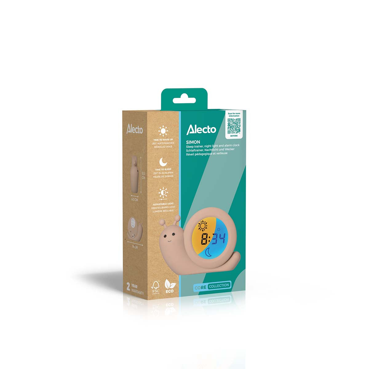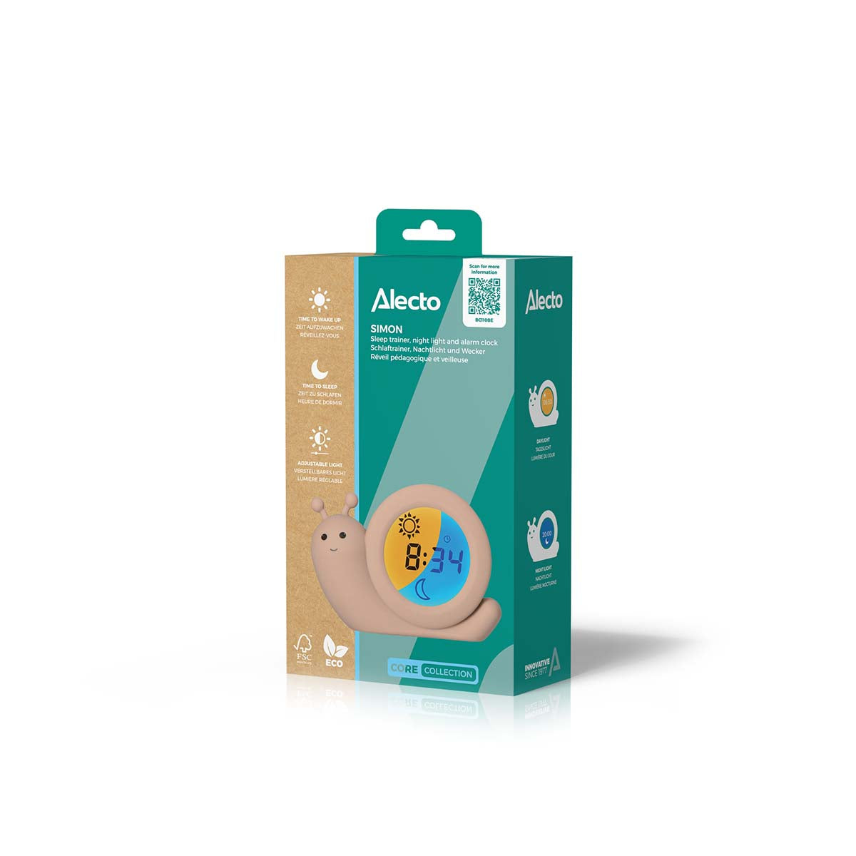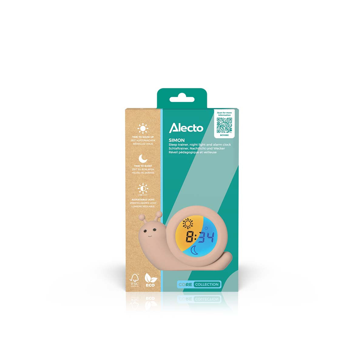 Le modèle BC110BE SIMON de la marque Alecto Baby est un produit deux-en-un : il s’agit à la fois d’un réveil pédagogique et d’une veilleuse. Ce, sous la forme d’un gentil escargot, du nom de Simon. Ce réveil pédagogique permet aux jeunes enfants d’acquérir la notion du temps. En tant que parent, vous définissez l’heure à laquelle votre enfant peut se lever. L’écran est de couleur bleue et affiche une lune ? C’est le signe qu’il est l’heure d’aller se coucher. Il est l’heure de se lever ? L’écran du réveil BC110BE SIMON est de couleur orange et affiche un soleil. Le réveil BC110BE SIMON est livré avec un câble de chargement de très grande longueur (200 cm), il est également rechargeable, il est donc mobile et peut être utilisé sans fil.