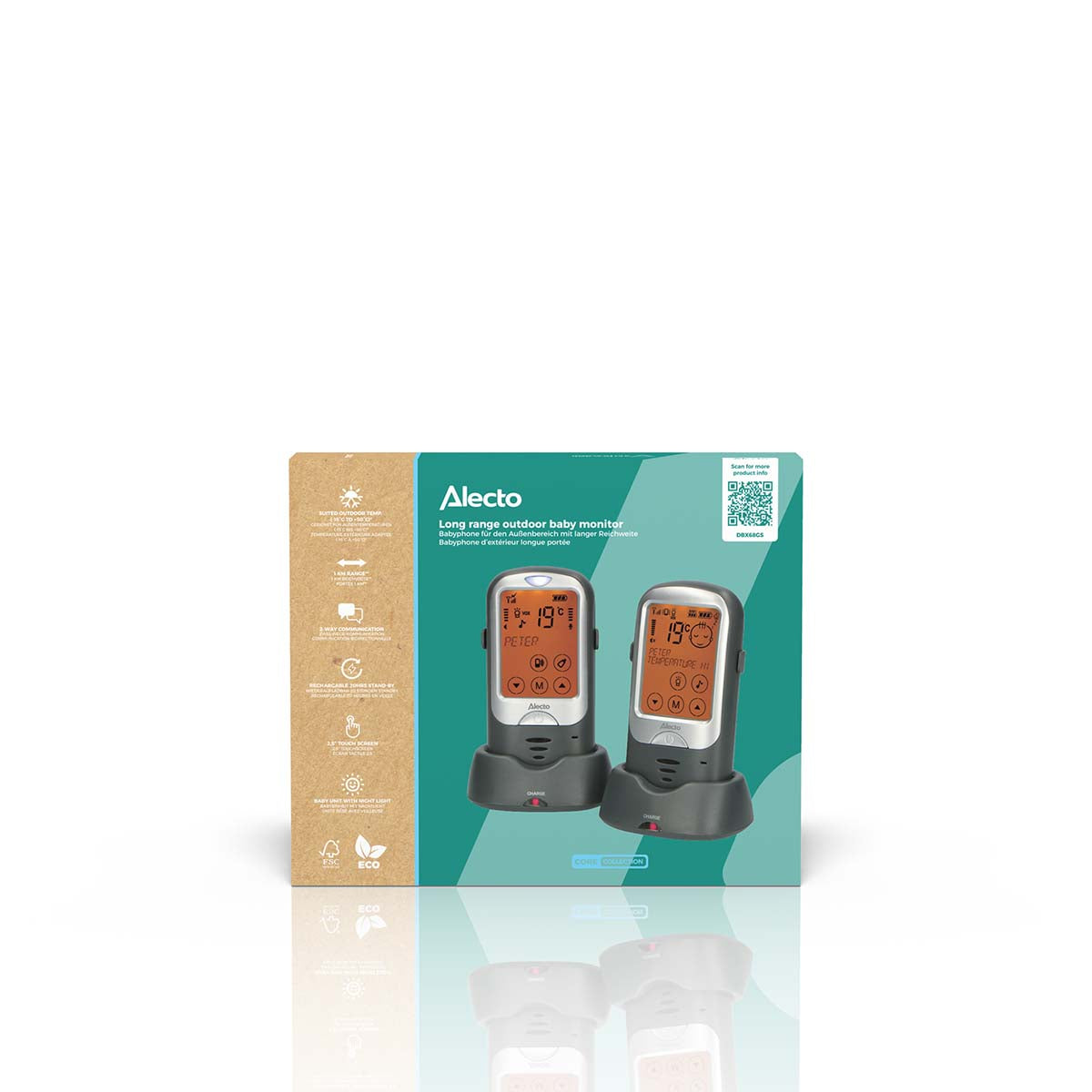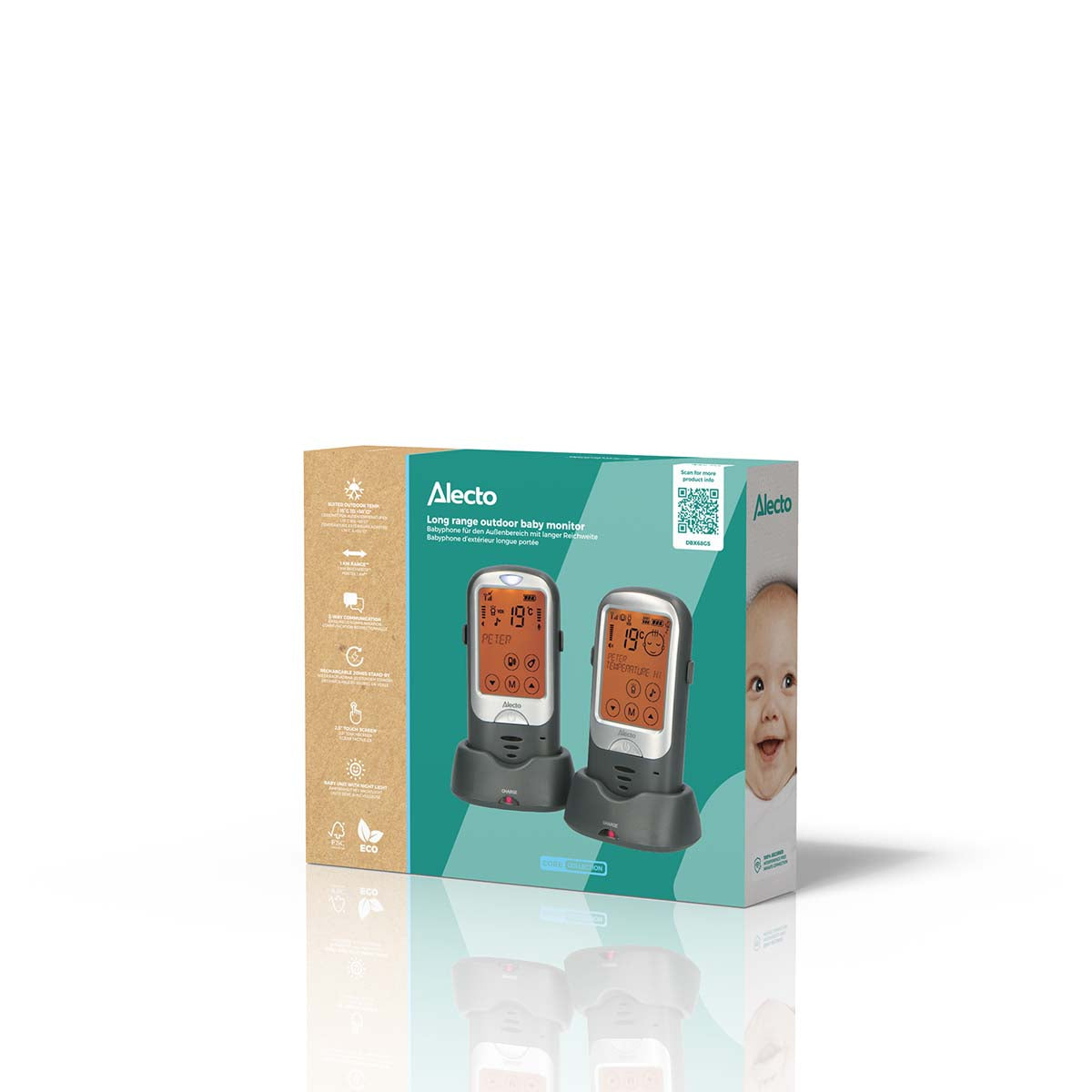 Avec le babyphone extérieur à grande portée Alecto DBX68GS, vous optez pour un produit de haute qualité, bien étudié et facile à utiliser. Il est également disponible en blanc/anthracite (DBX-68).