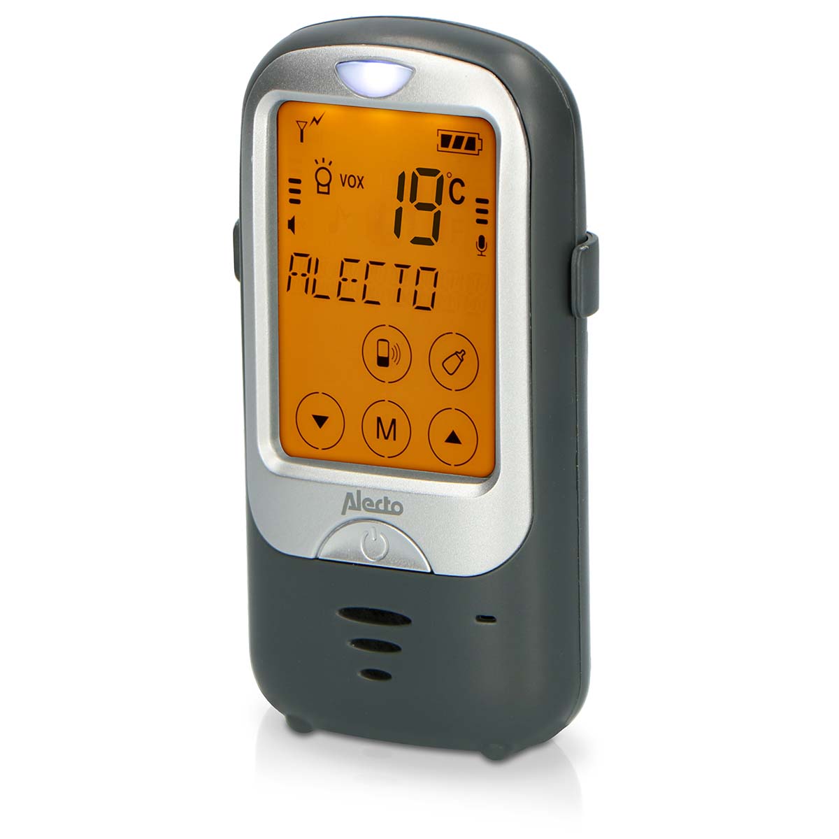 Ce babyphone est conçu pour l’extérieur, il possède cependant toutes les fonctionnalités que vous attendez d’un babyphone moderne. Ainsi, la sensibilité du microphone est réglable. Si votre enfant ne dort pas, est agité ou pleure, vous pouvez le réconforter à distance ou éteindre et allumer la veilleuse. Le babyphone DBX68GS offre, grâce à sa pile de qualité, une autonomie comprise entre 12 et 20 heures, selon les conditions. Et tout comme la plupart des babyphones de la marque Alecto, il vous permet de déterminer la température de la chambre de votre enfant (affichée sur l’unité parents). Vous pouvez également définir une alarme lorsque la température est supérieure ou inférieure à ce que vous souhaitez. Il s’agit d’une fonction très pratique, surtout en voyage !