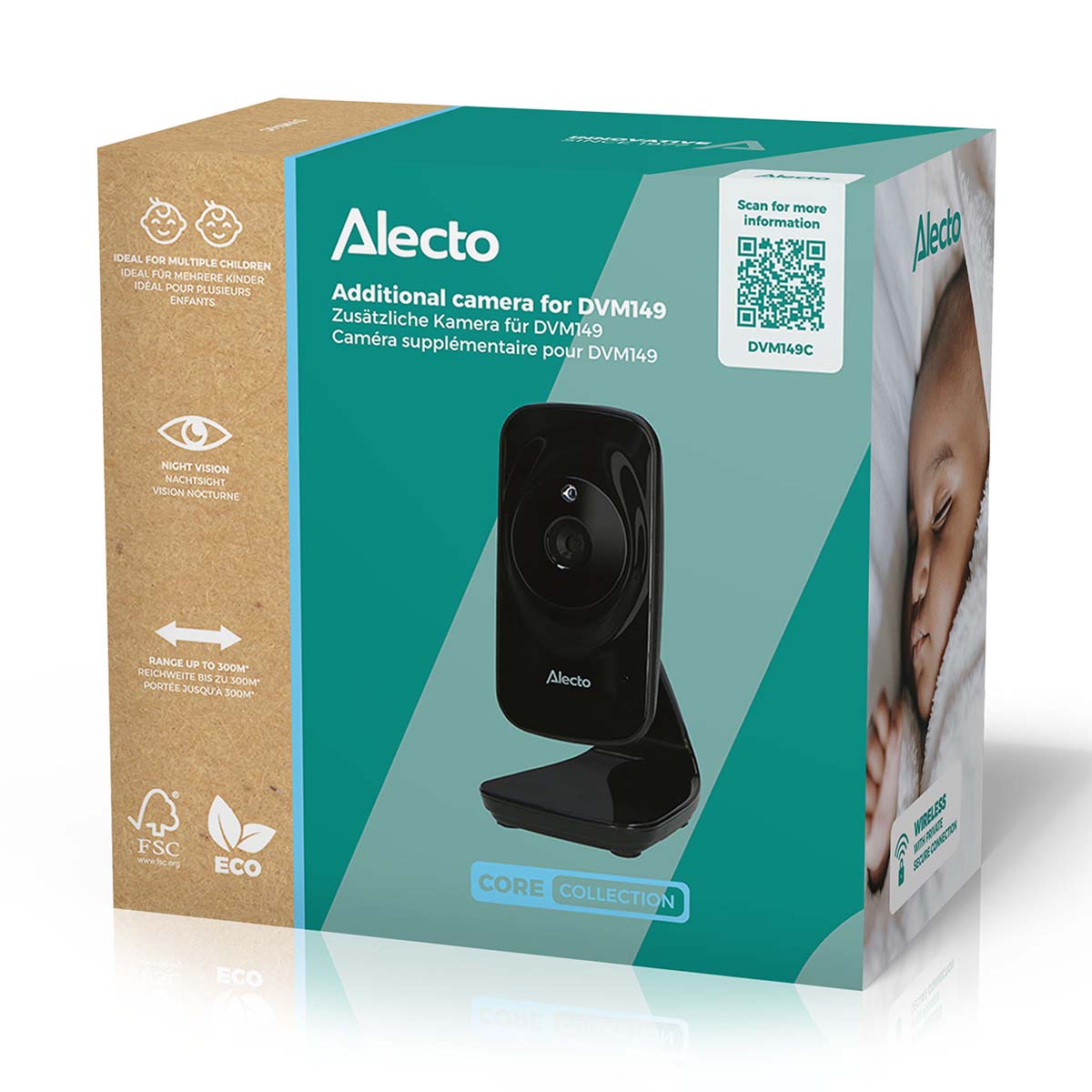 De Alecto Baby DVM149C is een extra camera in de kleur zwart voor de DVM149 babyfoon van Alecto Baby. De camera is ideaal voor ouders met meerdere kinderen. Hij heeft een groot bereik – tot 50 meter binnen en tot 300 meter buiten – waardoor je als ouder lekker je ding kunt doen terwijl je kindje ligt te slapen. Er kunnen maximaal 4 camera’s op 1 ouderunit aangesloten worden.