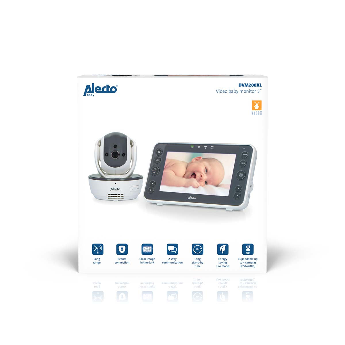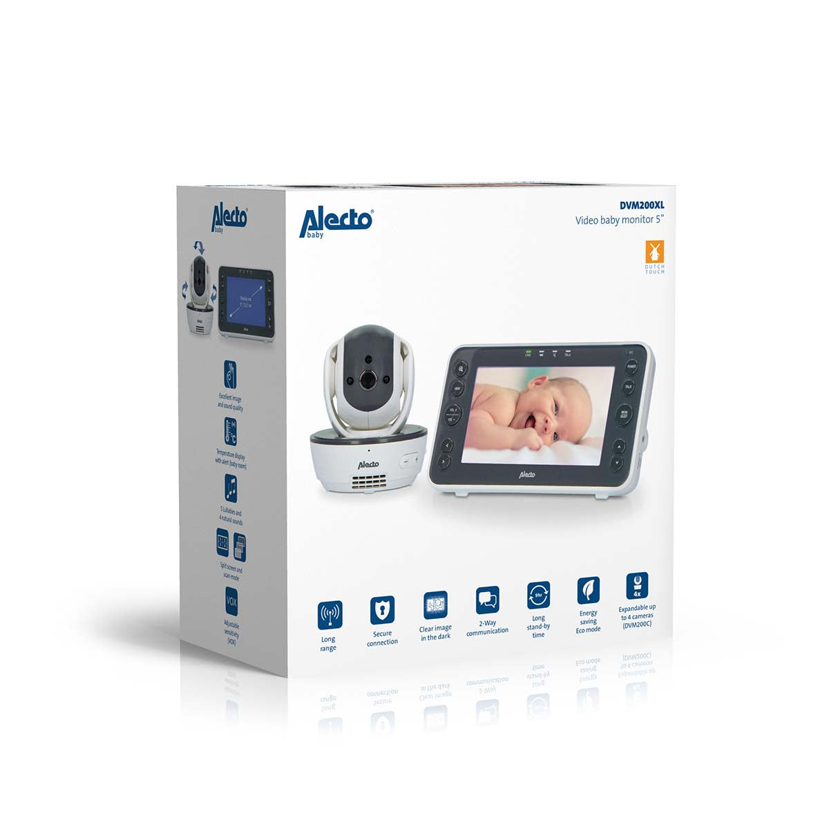 - Extra groot scherm. De monitor van de DVM200XL maak deze babyfoon echt XL. Met een diameter van 5 inch / 12,7 centimeter is dit de monitor met het grootste display dat op dit moment in de markt verkrijgbaar is.